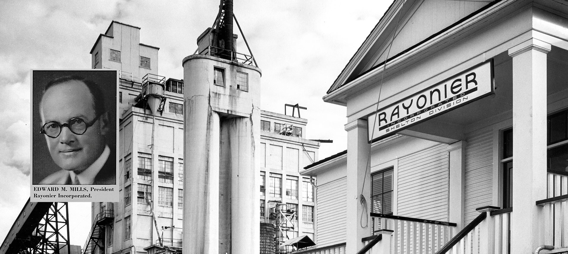 Rainier Pulp & Paper Company is founded in Shelton, Washington, in 1926. President Edward “Ted” Mills, a self-educated immigrant from Wales, sees an opportunity to use Washington’s plentiful Western hemlock trees to produce a high-grade bleached paper pulp used for books and writing paper.